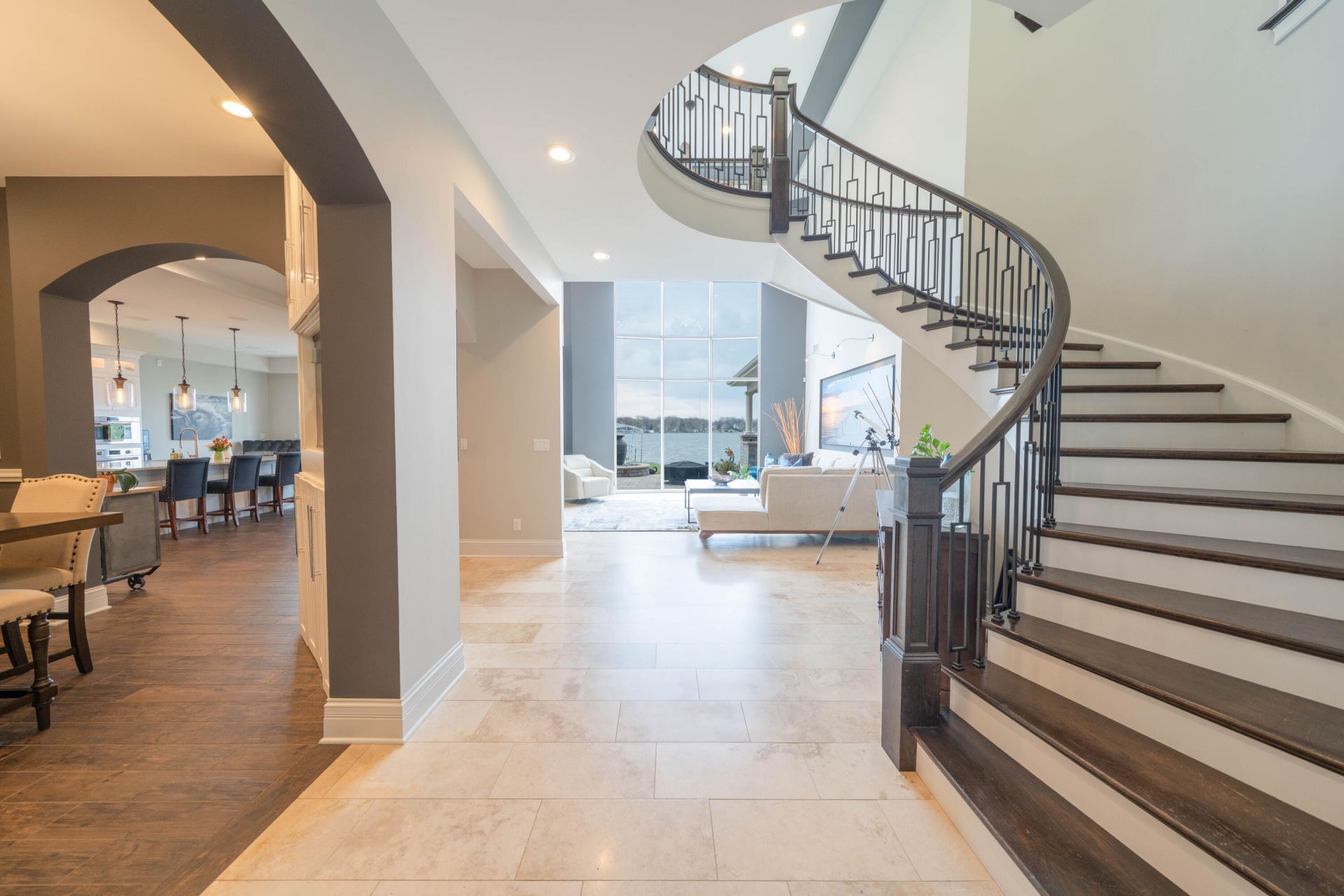 Luxurious Mediterranean Lakefront Estate - Cedar Lake Nestled on a private cul-de-sac, this custom Mediterranean masterpiece offers 5,226 sq. ft. of luxury on a third-acre lot with 75 ft. of prime lakefront on an 800-acre lake, just 45 miles from Chicago. Enjoy year-round water skiing, boating, fishing and ice fishing in this serene haven. Step into a grand foyer with a custom staircase and 28-ft. ceilings in the living room, where floor-to-ceiling windows showcase stunning lake views. A dual-sided fireplace links to a gourmet kitchen with Wolf, Sub-Zero, and Bosch appliances, a sit-up island, and radiant heat throughout the first floor, backed by forced-air heat. This 5-bed, 5-full-bath, 2-half-bath estate features a master suite with his-and-her closets, a spa-like ensuite with steam shower, dual sinks, and radiant heat. Two bedrooms and a state-of-the-art theater with a 120-inch screen and Dolby Digital sound open to balconies. A 10x10 gym could serve as an office or transition to a bedroom. Entertain in the social room with a full bar, Sub-Zero wine fridge, beverage coolers, and a cabana bathroom leading to an expansive lakefront patio. The landscaped backyard, with a full sprinkler system, offers a panoramic patio for grilling and hosting. Control4 smart home technology manages lighting, temperature, alarms, cameras, and AV. Highlights include a 4-car garage, two laundry rooms, a Generac generator, and a boat dock with access to 12-ft.-deep water. With custom upgrades and timeless elegance, this lakefront gem blends luxury and functionality. Some furnishings and art are negotiable. Buyer to confirm all measurements. Schedule your tour today!