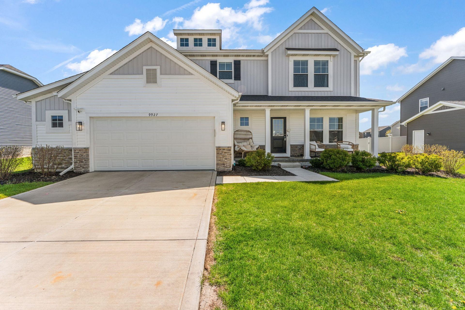The spacious Better than New Sedona model offers a warm and comfortable living space with thoughtful design throughout. This 4-bedroom, 3-bathroom home includes a smart home and comfort package along with stunning interior upgrades such as grey cabinetry, granite countertops, wood laminate flooring, and French doors leading to a private den. Enjoy seamless indoor-outdoor living with a covered porch off the breakfast area, perfect for relaxing or entertaining. Energy-efficient features include Low-E Energy Star qualified windows, California corners, Tyvek exterior house wrap, sealed air ducts/registers, and third-party inspections, along with a 10-year transferable structural warranty and industry-leading customer care program. Additional upgrades include West Elm lighting throughout and decorative accent walls in the family room. The beautifully finished basement offers an oversized family room, gaming area, and ample storage space. Step outside to an oversized covered back porch, expansive patio, privacy fence, and landscaped yard complete with a swing set. Better than new with countless upgrades, all located in a desirable neighborhood--this home is a must-see!