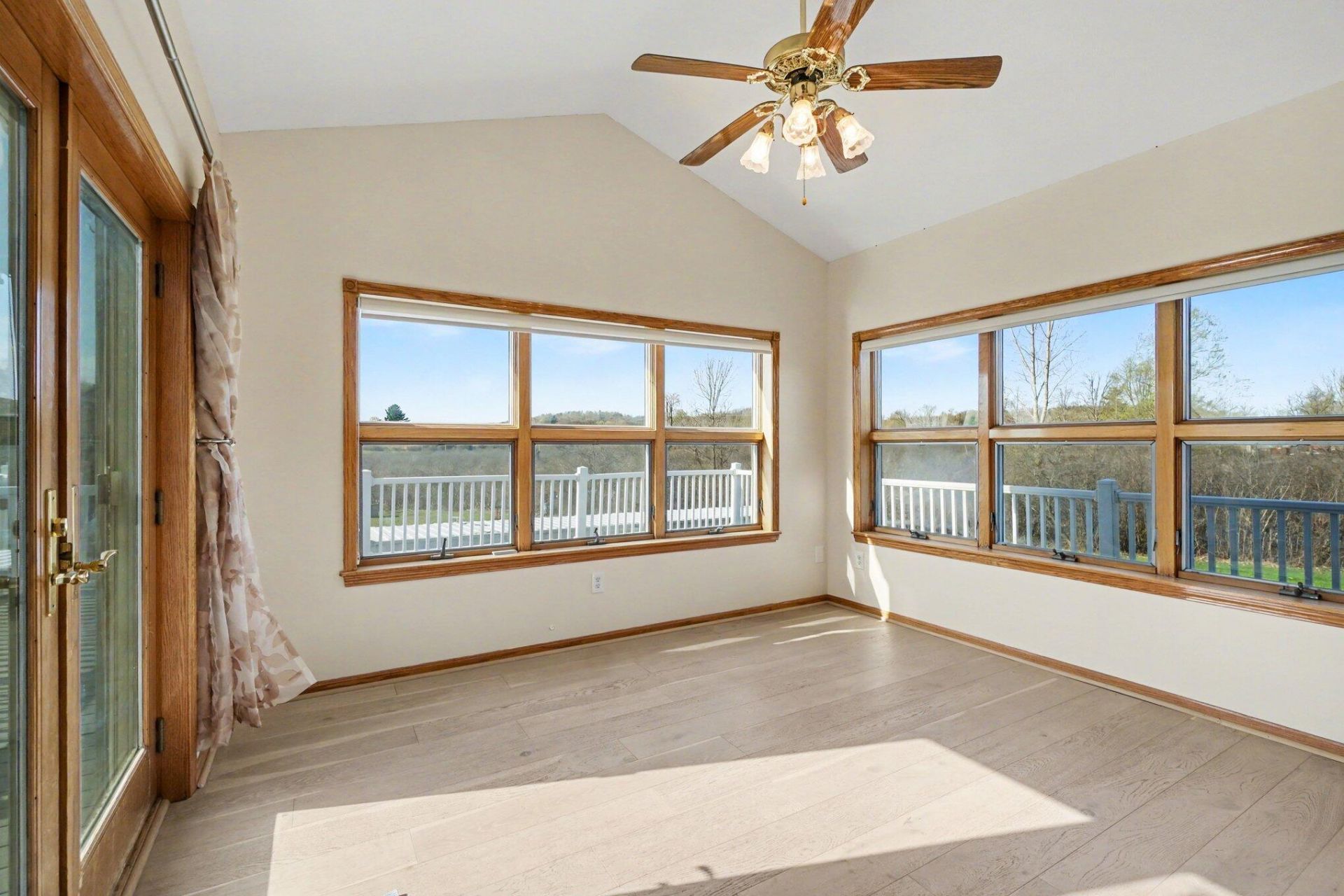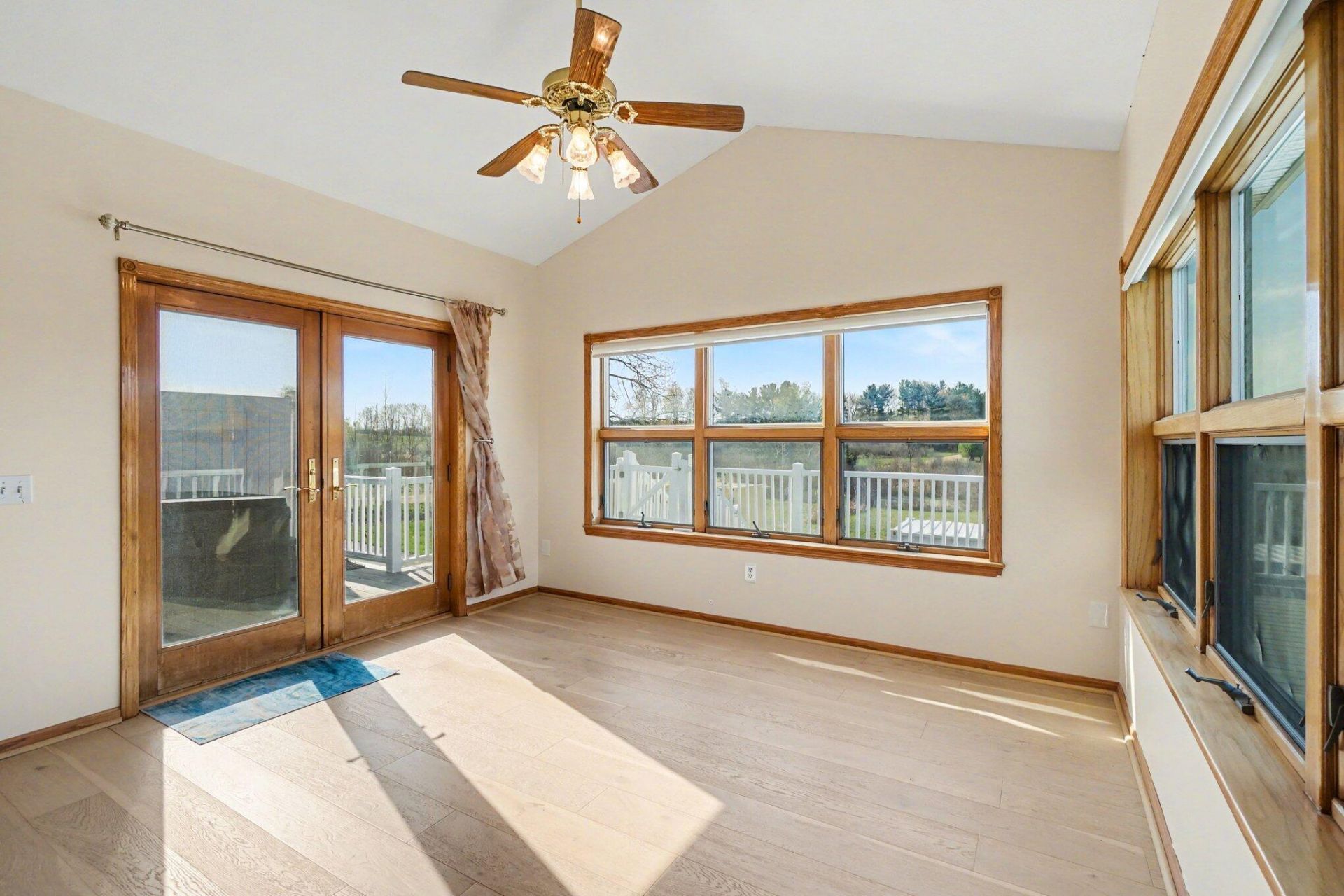 Welcome to this beautiful, freshly painted, walkout ranch home situated on over 7 acres of serene land. This spacious property features 4 bedrooms and 3 bathrooms, providing ample space for families or guests. The inviting open-concept design seamlessly connects the living room, dining area, and kitchen, creating a warm atmosphere filled with natural light. The modern kitchen is well-equipped with brand new stainless steel appliances and plenty of counter space, making it ideal for cooking and entertaining. The master suite offers a private retreat, complete with an ensuite bathroom designed for relaxation. Three additional well-sized bedrooms ensure comfort and flexibility for various needs, whether for family, guests, or a home office.Outdoor living is a highlight of this property, with easy access from the main living areas to the expansive outdoor space. Enjoy your morning coffee on the deck, host gatherings, or simply unwind in nature. The land is ideal for future pole barn,
