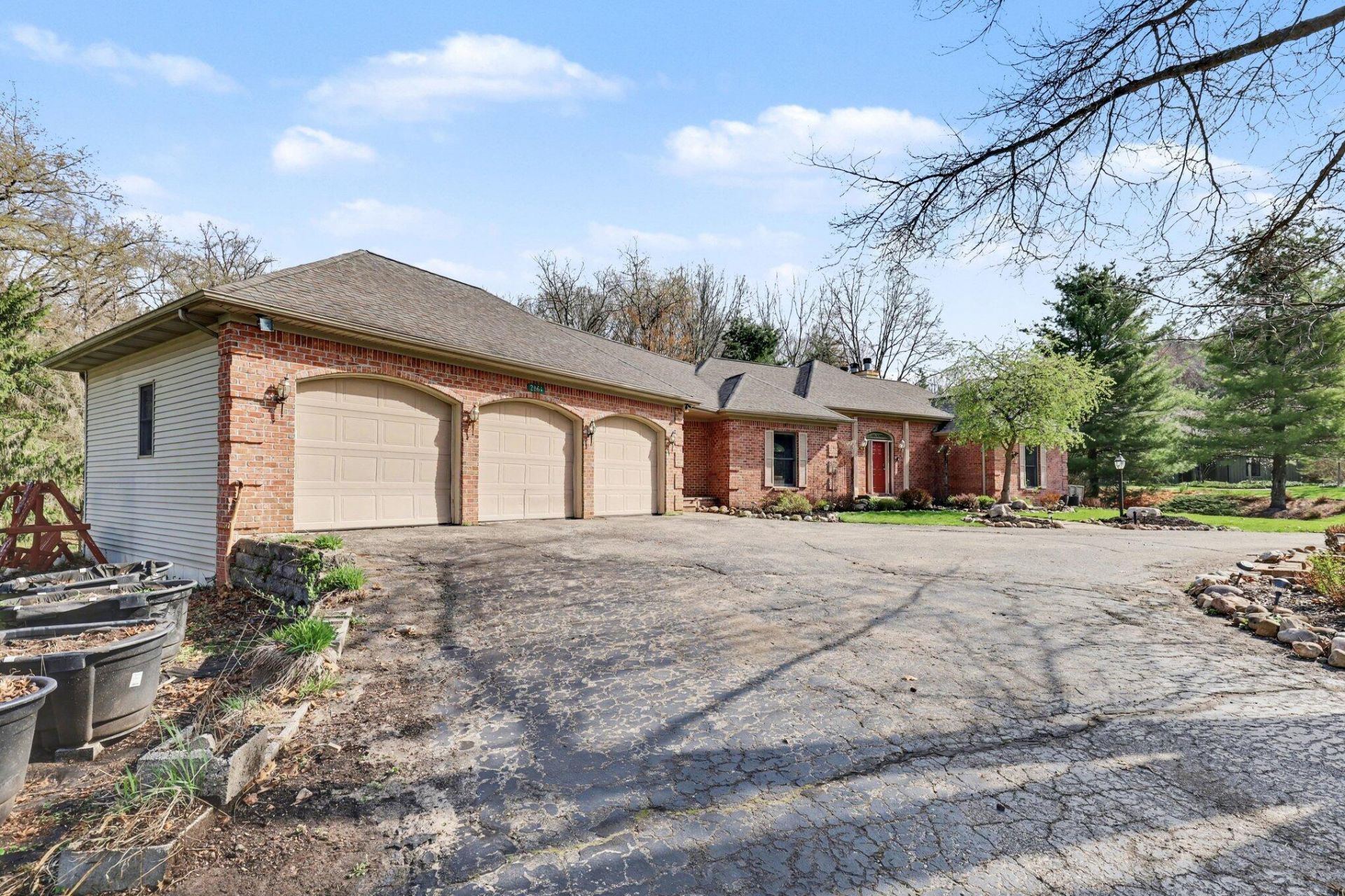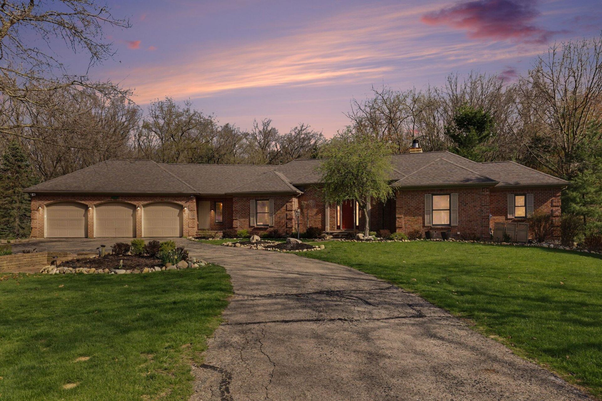 Welcome to this brick ranch masterpiece built by Andy Kolenbrander. Nestled on 1 acre of beautifully landscaped grounds (see photos of gorgeous perennials!). This former parade home features 5 bedrooms, 2.5 baths, 2,118 sq ft above grade, and 1,696 sq ft finished below grade. Step inside to find freshly painted interiors, new carpet on the main floor, and an updated kitchen that includes Grabill cabinets, a Sub-Zero refrigerator/freezer, new countertops, and hardware. The master suite boasts fresh paint, updated countertops, and hardware. Entertain in the sunroom overlooking a wooded backyard or host family gatherings on the large, freshly stained deck. Additional features include 3 gas fireplaces, a double stairway, a walkout lower level, a central vacuum system, a heated 3-stall garage, and a roughed-in third bath in the lower level off the 5th bedroom. With high-quality finishes, this home combines elegance, comfort, and functionality--truly a Rockford gem!