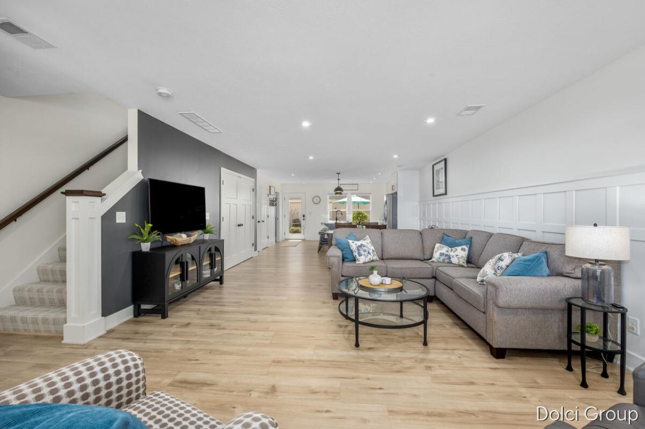 Welcome home where style, convenience, and lifestyle come together! This beautifully updated townhome features over $15,000 in improvements, including new luxury vinyl plank flooring on both levels, freshly recarpeted steps, and added cabinetry in the laundry room for extra storage. The bright, open floor plan is filled with natural light and is perfect for everyday living and entertaining. Upstairs offers two spacious bedrooms, each with its own ensuite bathroom. The primary suite includes dual sinks, hard surface counters, and a large walk in tile shower. Enjoy your private patio leading to a two stall garage with additional storage. Ideally located within walking distance to Cannon Township trails, pickleball courts, Ricks Food Center, and local restaurants. The association is dog friendly and features a dog park. Move right in to comfort and beauty!