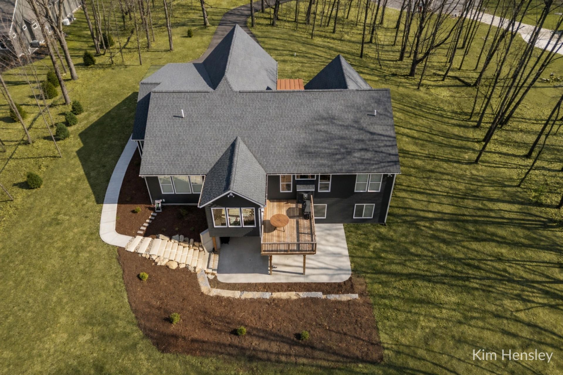 Welcome to the gated community of Squires Corner, where thoughtfully designed homes are nestled among mature trees, offering a rare blend of neighborhood charm and exceptional privacy on every homesite. This stunning, customized Maxwell home sits on a beautifully wooded lot, creating a peaceful retreat while still enjoying the warmth and connection of this highly sought-after community. This 5-bedroom, 3.5-bathroom home has been expertly expanded and upgraded throughout. Widened by 4 feet, the home offers an impressive open-concept layout with an expansive living and kitchen area, along with added space in the laundry room. The kitchen is truly the heart of the home, perfect for gathering and entertaining. Featuring a 10.5-foot quartz island, walk-in pantry, and high-end finishes. The spacious Owners Suite has been thoughtfully enhanced to include a larger walk-in closet, double vanity, and tiled shower, with room to add a luxurious freestanding tub for a spa-like experience. Enjoy year-round relaxation in the Michigan Room, where panoramic wooded views create a serene backdrop, or unwind in the main living area complete with a tray ceiling and cozy gas fireplace. The finished walkout lower level offers incredible versatility with a kitchenette, two additional bedrooms, and direct access to the outdoors, complete with custom stone steps that blend beautifully into the natural landscape. Experience the perfect balance of community living and private wooded surroundings. This is truly a place to feel at home.